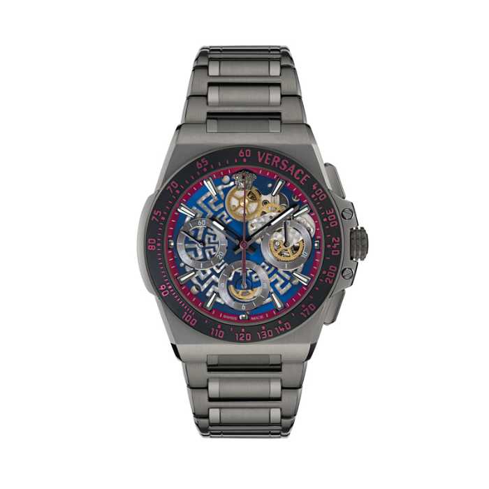 「GRECA EXTREME CHRONO SKELETON」は、ヴェルサーチェの腕時計では初めてスケルトン仕様を採用した特別モデル。