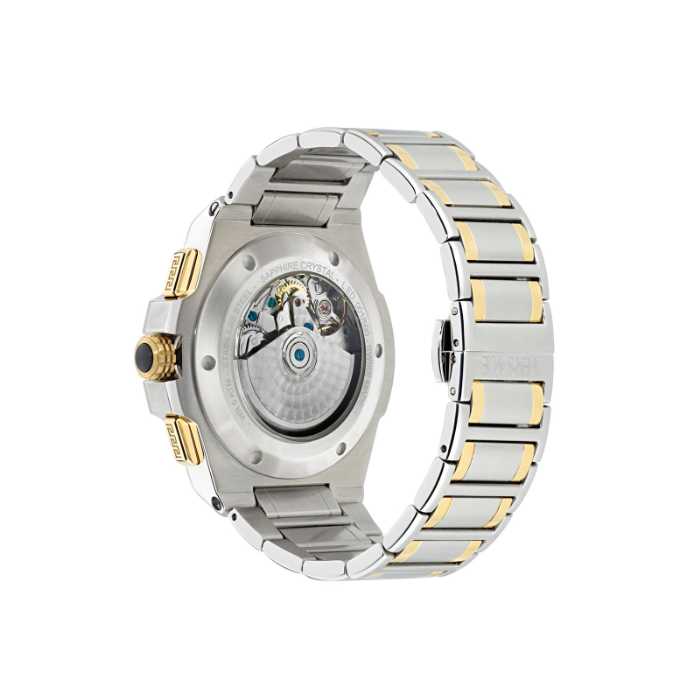 裏蓋にはシースルーバックを採用し、両面からムーブメントの動きを楽しめるのもポイント。