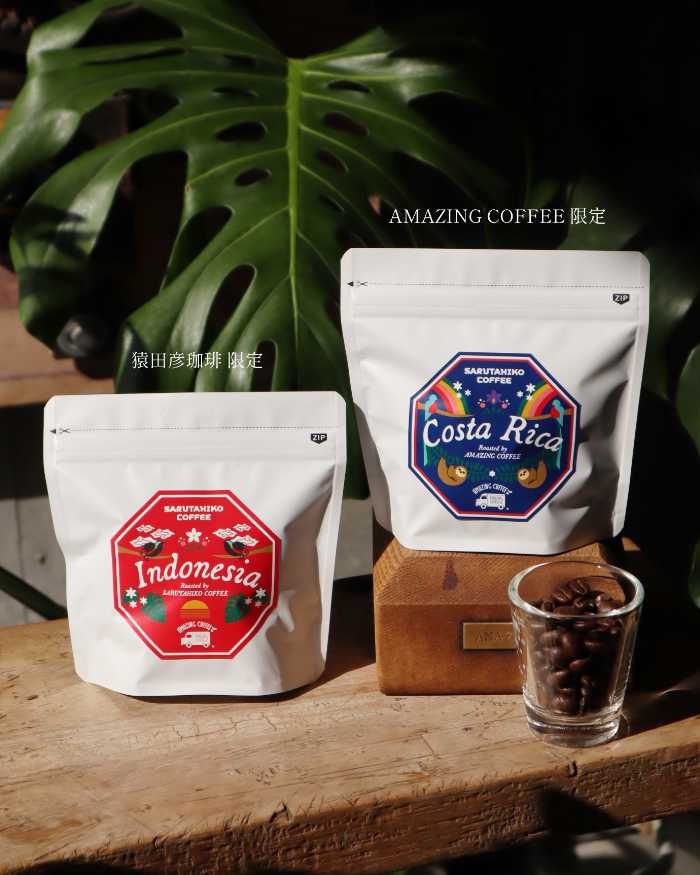 AMAZING COFFEEでは「コスタリカ INFINITY KENYA HONEY 中深煎り」(100g・2,000円)、猿田彦珈琲では「インドネシア GAYO SUMATRA NATURAL 深煎り」(100g・1,800円)を発売します。