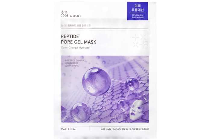Blubanゲルマスクは、カラーが変化するハイドロゲルを採用し、肌に乗せるとフィルム化してぐっと密着。