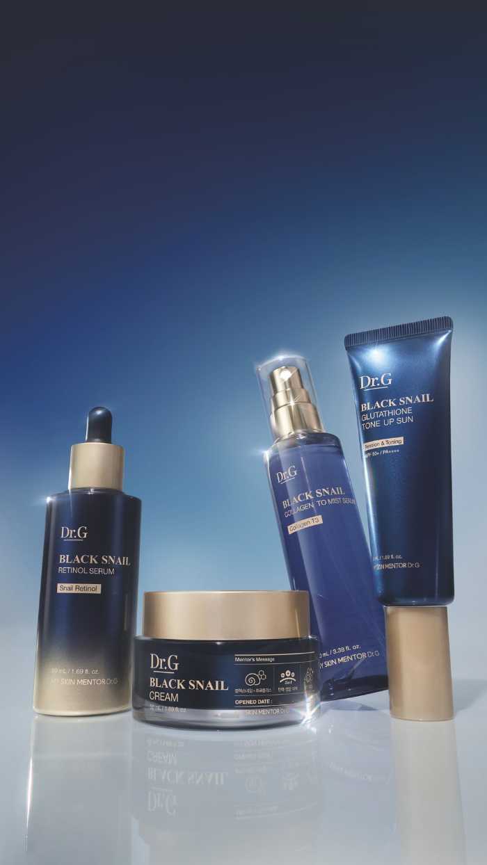 Dr.Gのブラックスネイルラインは、黒カタツムリ由来のムチン*¹や美容成分を贅沢に配合し、乾燥やハリ不足、毛穴悩みに多角的にアプローチ。