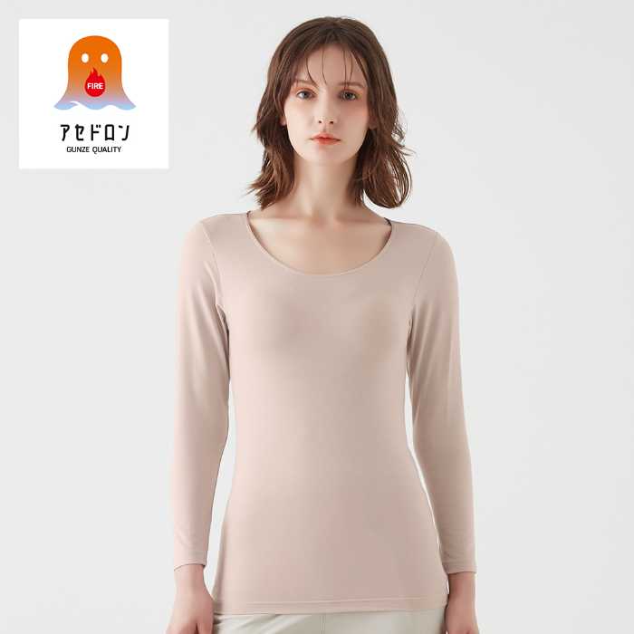 【the GUNZE】冬の綿100% 8分袖インナー(M・L・LL、ホワイト・グレーモク・ブラック・ベールブラウン・ロイヤルベージュ・チャコールグレー、¥2,200税込)は、厚手で肌側は微起毛♡