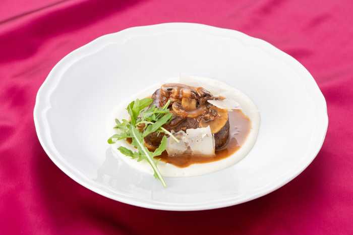 メインは「ハンガーステーキポルチーニクリーム カリフラワーピュレとパルメザンチーズ」3,630円(税込・サービス料別)。