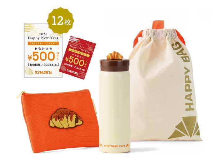 新年の始まりにぴったりのサンマルクカフェ福袋2026は、チョコクロチャーム付きタンブラーや刺繍ポーチ、ゆず茶福袋など全4種展開。スペシャルチケットも付いておトク感満載です♡