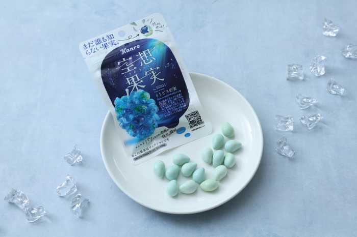 「カンロ 空想果実グミ イトピスの実」(価格:230円・税込248.40円)は、深海に育つ大樹から採れた“人魚の涙”のような果実をイメージした、数量限定のロマンティックなグミ。
