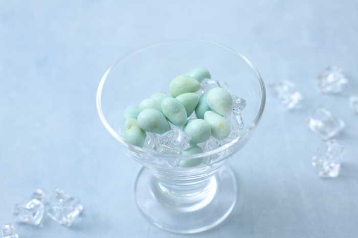外側は隕石のように硬いコーティング、中は弾力のある深海色のグミという2層構造で、酸味の効いた爽やかなフレーバーが印象的です。