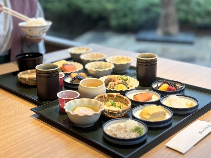 神戸から電車で約30分、大阪から電車で約60分と、気軽に訪れることもできる有馬温泉。創業700年以上の歴史を誇る、有馬老舗の温泉宿「兵衛向陽閣」で過ごす、オトナ女子のご褒美旅をご紹介します。温泉を楽しんだ翌朝のお楽しみは、目覚めの朝ごはん。この日の会場は、メインダイニング木蘭にて朝食バイキングをいただきました。