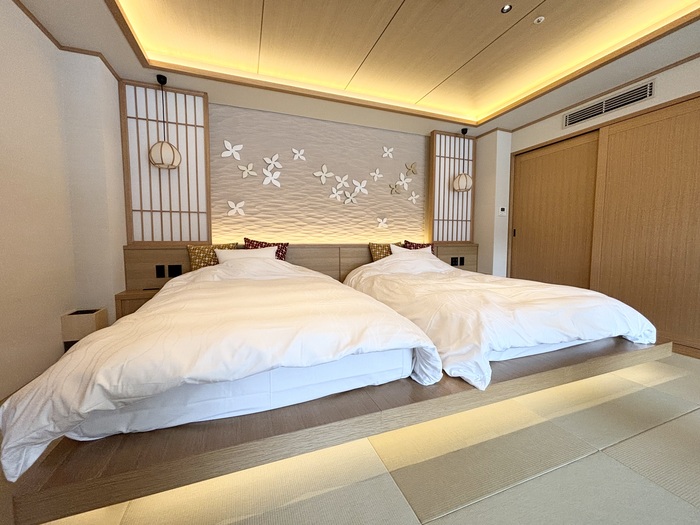 温泉のゆらぎや美しい自然をイメージしたアートが散りばめられたお部屋