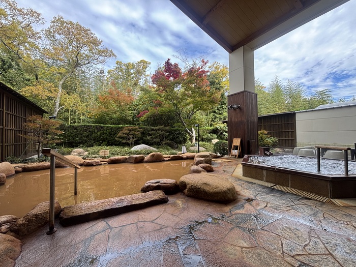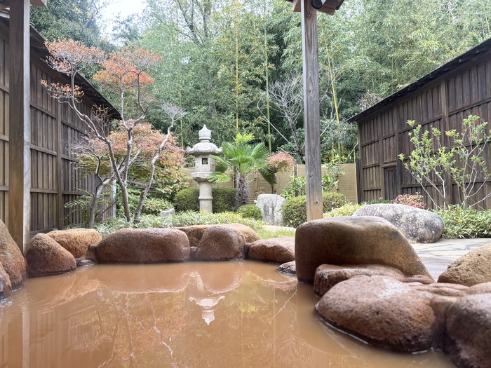 三の湯併設の貸切露天風呂にて、有馬の金泉「朝霧」「夕霧」の2タイプの貸切露天風呂をご用意。