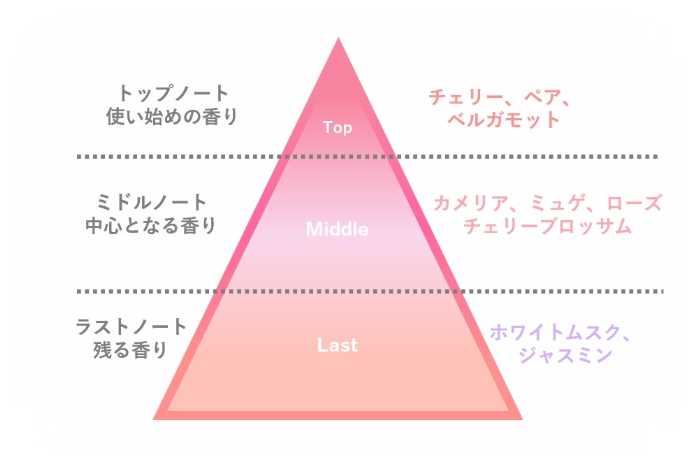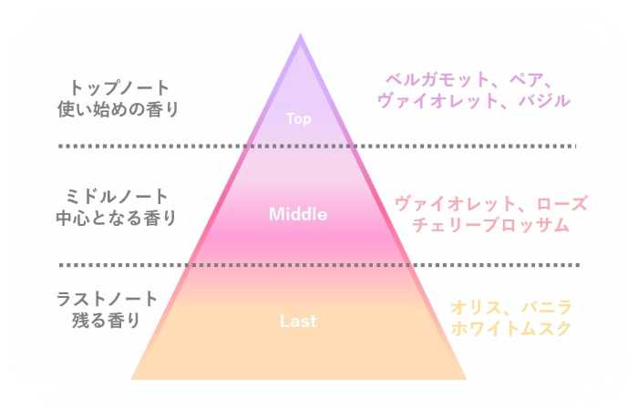 桜とスミレが溶け合う「チェリーブロッサム in ヴァイオレット」の繊細な香りが広がります。