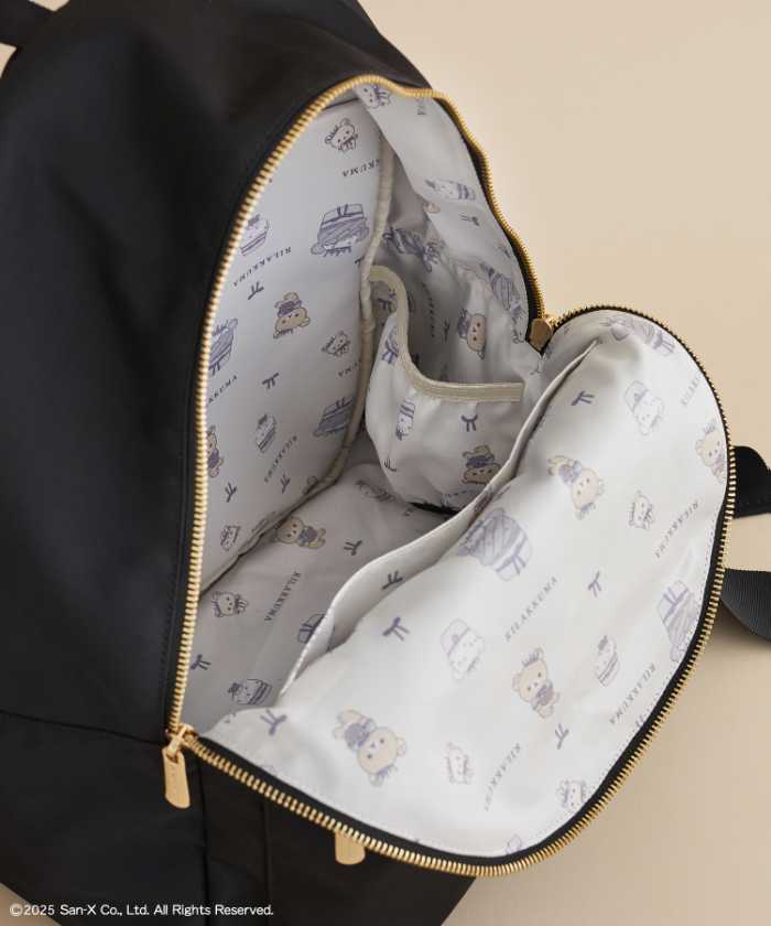 今回の目玉は、コラボ初となる「リラックマ リボンラウンドリュック」(13,200円)。ブラックの本体に刺繍されたリラックマが上品で、大人も使いやすい仕上がりです。