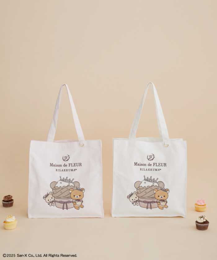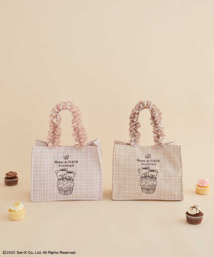 また、「リラックマ フリルハンドルスクエアトート」(8,800円)や「スクエアトートバッグ」(6,900円)も登場。アイボリーやピンクの柔らかな色味に、カップケーキの世界観が刺繍されています。