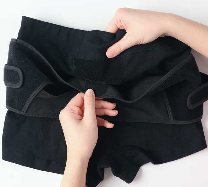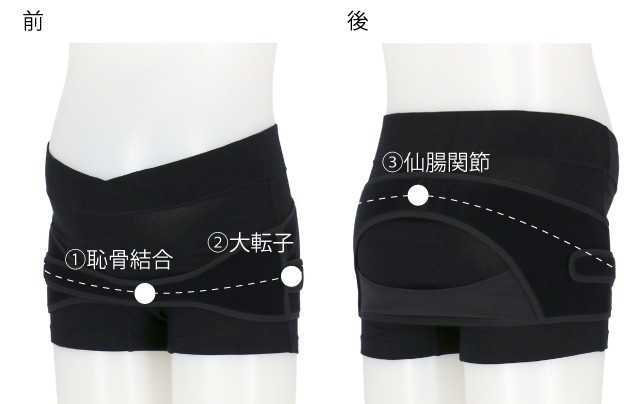 骨盤まわりの「仙腸関節」「大転子」「恥骨結合」を環状にサポートし、仕事や育児など動きの多い日でもズレにくい設計です。ストレッチ性のある生地でやさしいはきごこちも魅力♪