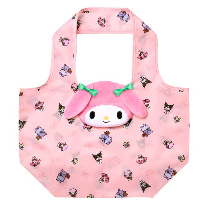 商品特長:マイメロディまたはクロミのフェイス型ポーチに収納できるエコバッグ。予約時にどちらか1種を選べます。デイリーのお買い物やお出かけに便利なアイテムです♡