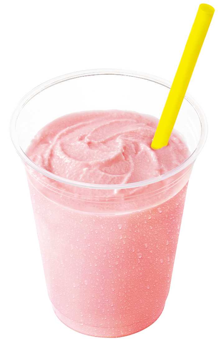 「~ベリーマカロン付き~ごろっと苺パフェシェーキ」(490円)は、“あまおう”の果汁入りシロップを使用したシェーキに、ホイップクリームと苺の果肉をたっぷりトッピング。