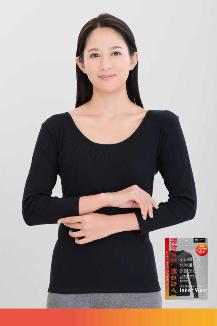 ぽかぽかカイロコットンインナー(Uネック9分袖)