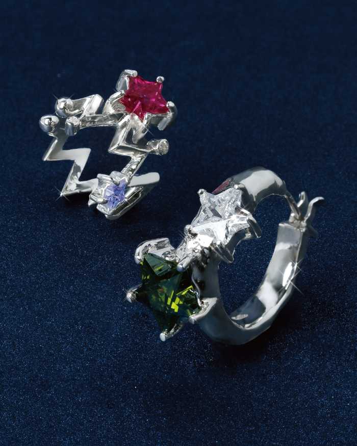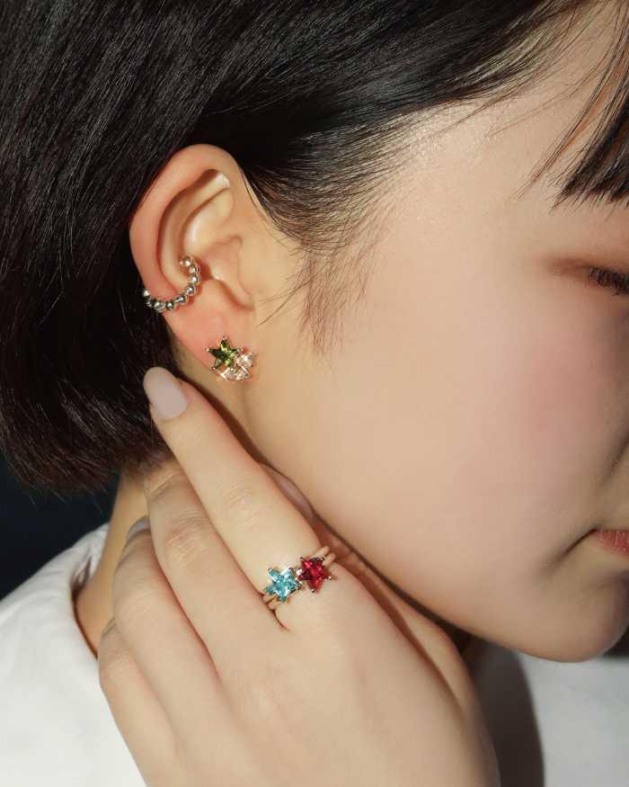 リング、ピアス、イヤーカフなど豊富なラインナップに加え、9色から選べるスターシェイプストーンで自分だけの組み合わせを楽しめるのも魅力♡