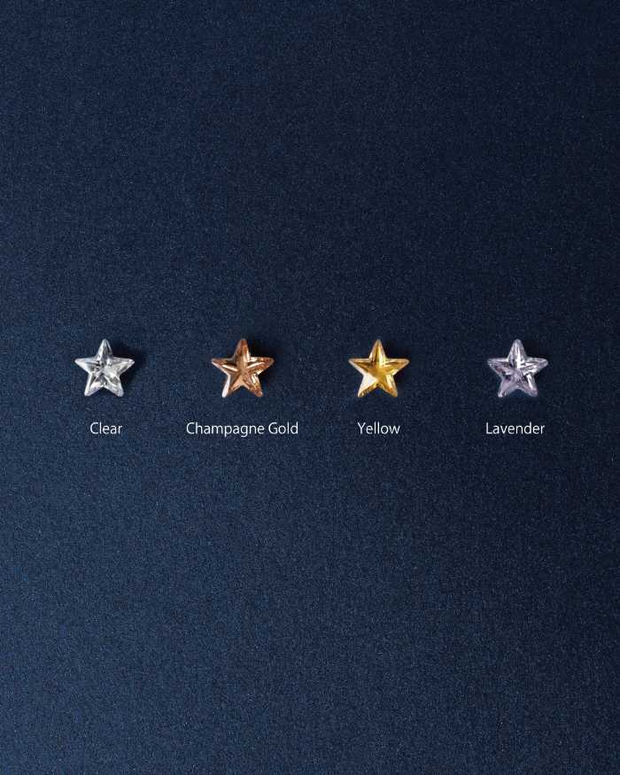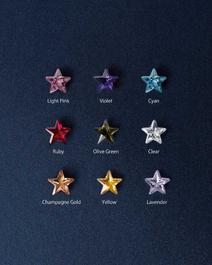 スターシェイプストーンは、ライトピンク・バイオレット・シアン・ルビー・オリーブグリーン・クリア・シャンパンゴールド・イエロー・ラベンダーの全9色から選べます。