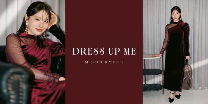 MERCURYDUOの2025年ホリデーコレクションから登場したベロアとサテンを使用した2型のワンピースは、華やかで上品な雰囲気を持ち合わせています。