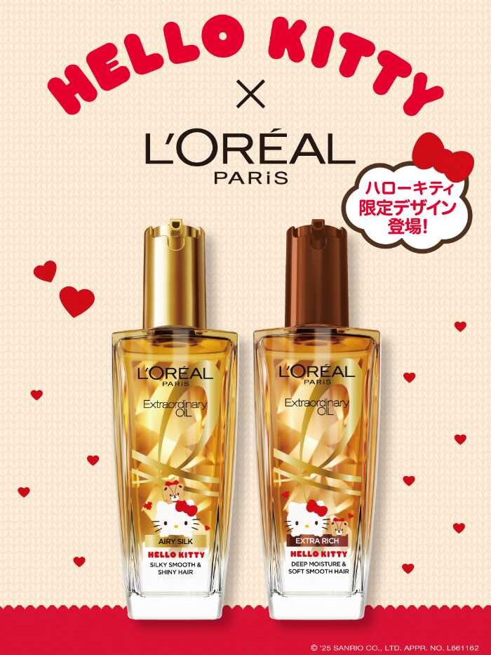 世界最大の化粧品会社ロレアルグループが展開する「ロレアル パリ」から、ハローキティとコラボした特別デザインの「エクストラオーディナリー オイル」2種が数量限定で登場します。熱や乾燥に悩む冬の髪を、美しく守りながらツヤめかせる人気シリーズが、愛らしいキティデザインでより特別な一本に♡発売は2025年12月6日(土)。毎日のヘアケアをちょっと幸せにしてくれる、限定アイテムは要チェックです。