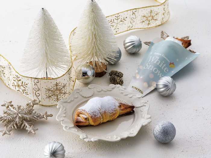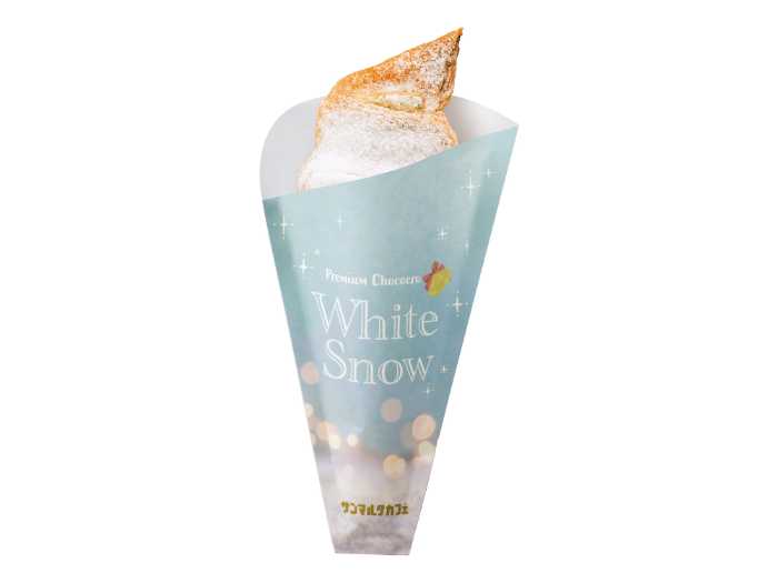 「プレミアムチョコクロホワイトスノー」は、ミルキーなホワイトチョコをサクサクのクロワッサン生地で包み、粉雪のようなパウダーシュガーを重ねた冬だけの贅沢なスイーツ。