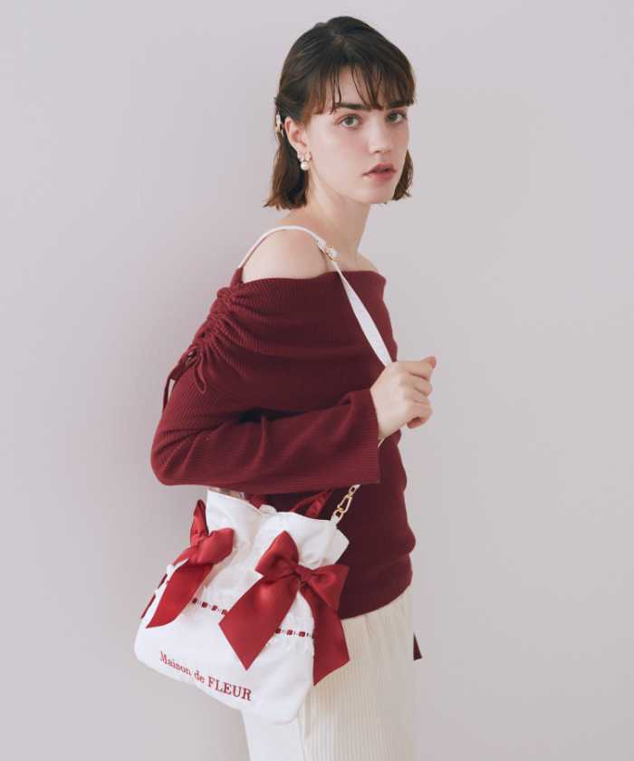「ガトーフレーズダブルリボン2Wayトート」はOffWhiteのみで、ブランド人気のダブルリボンにふわふわのクリーム風フリルを添え、ホリデーらしい華やぎを演出します。どちらも甘さと上品さを兼ね備え、おでかけが楽しくなる仕上がりです。