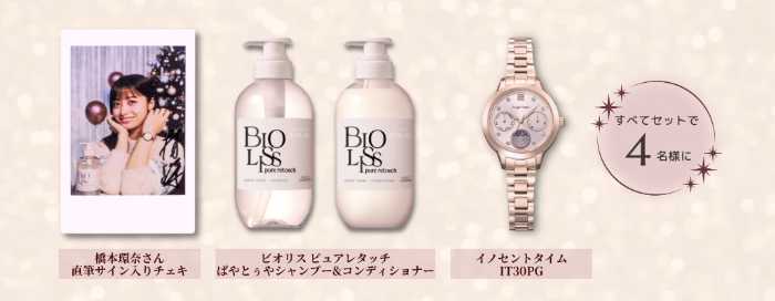 景品は、橋本環奈さん直筆サイン入りチェキ、BIOLISSシャンプー&コンディショナー、さらにAngel Heartの「IT30PG」という豪華な内容。