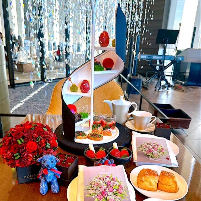 コンラッド大阪の「40スカイバー&ラウンジ」では、ニコライ バーグマン フラワーズ & デザインとのコラボレーションによる「Blooms & Bites」ストロベリーアフタヌーンティーを開催中!2025年12月18日から2026年3月1日までの期間限定です。40階ロビーには、自然素材を生かした煌めくクリスマスツリーも登場。ニコライバーグマンの世界をスイーツでアートのように彩る、特別な冬のひとときを。