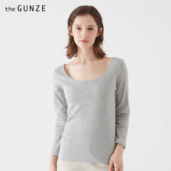 【the GUNZE】冬の綿100%8分袖インナー(えりあき広め)