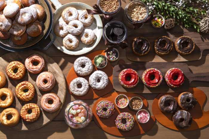 チョコソースやスプリンクル、ナッツ、クッキーなど20種以上のコンディメントが用意され、世界にひとつだけのオリジナルドーナツづくりが可能。