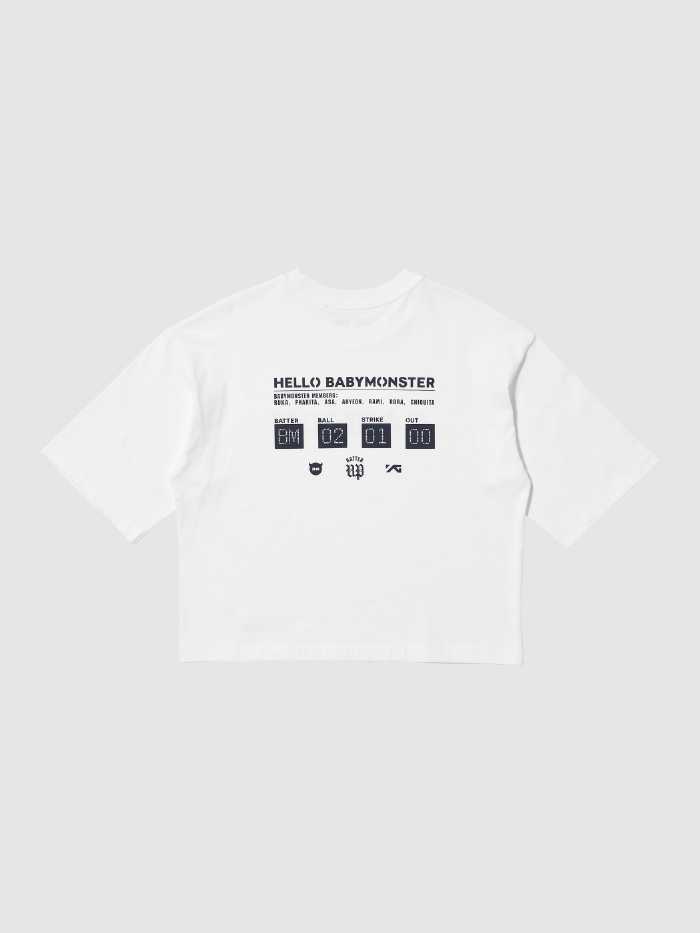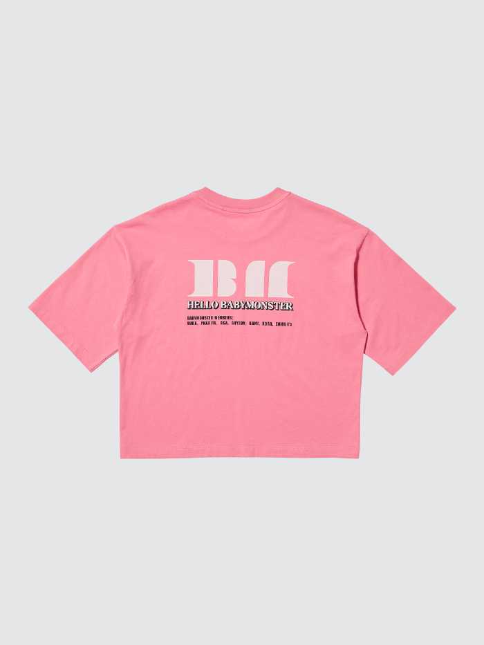 クルーネックとVネックの2種、ワイドボックスシルエットとシアー素材が特徴で、日常のコーディネートに取り入れやすく、BABYMONSTERの魅力を身近に楽しめるアイテムです。