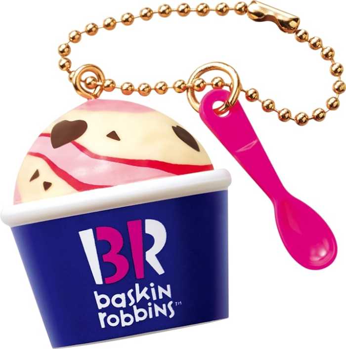さらにカップ型キーホルダー(約3.3cm×3.2cm)はラブポーションサーティワンとピンクスプーンがキュート♡コーン型と一緒に付けるとより可愛さアップ。
