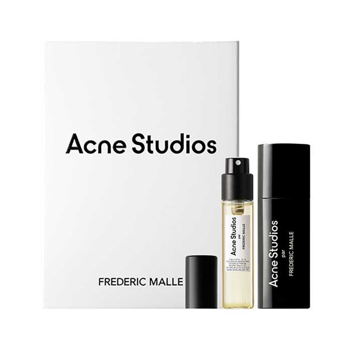 「アクネ ストゥディオズ パー フレデリック マル」トラベルスプレィセットは、10mLサイズのフレグランスとブラックのトラベルケースがセットになった限定品。