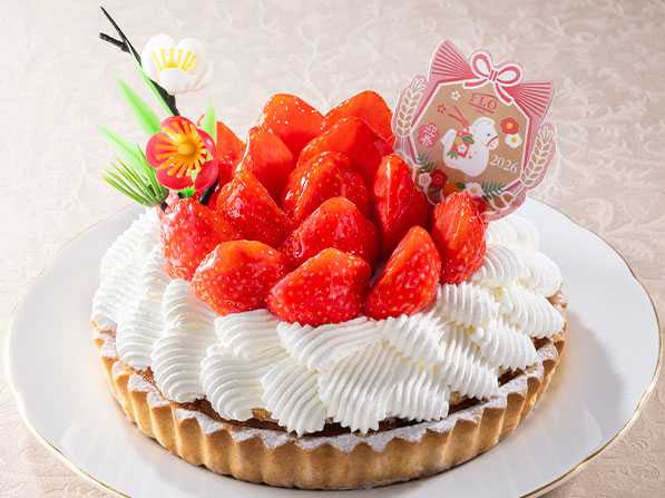 フロプレステージュの年末年始限定スイーツは、迎春8種のフルーツタルト、あまおうストロベリークリームタルト、フルーツロールケーキ、ガレット・デ・ロワの全4種♡