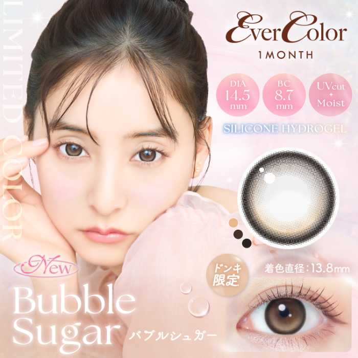 ナチュラルさとトレンド感を両立する「エバーカラー」シリーズから、待望の“水光レンズ”がマンスリータイプで新登場♡今回発売される「バブルシュガー」は、ぷるんとした水光感とくりっと感を両立した、まさに“主役級”の盛れデザイン。さらにドン・キホーテ限定での発売となり、話題性も抜群です。数量限定の特別チャームがもらえるキャンペーンも見逃せず、この冬の“かわいい”をアップデートしたい人にぴったりです。