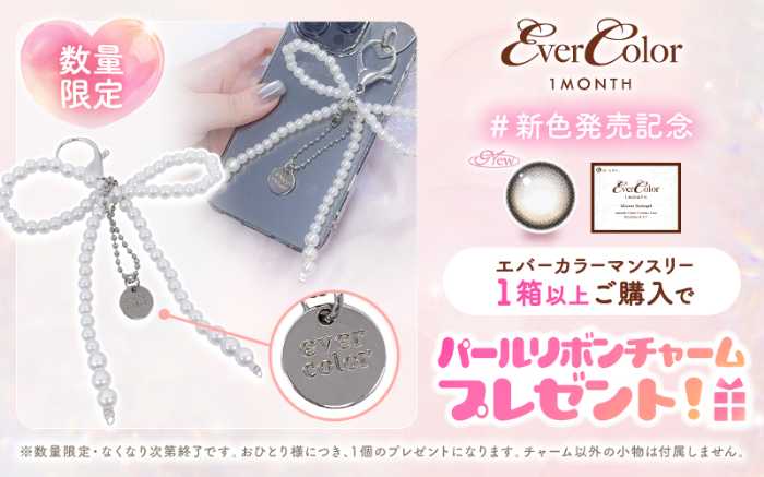 数量限定で、対象店舗にてエバーカラーマンスリーを1箱以上購入すると、オリジナルの「パールリボンチャーム」が先着でもらえるキャンペーンも実施。