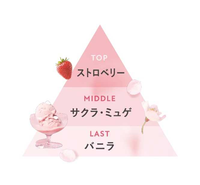 春限定の香りは、アイスクリームをイメージした可憐なサクラと奥行きのあるバニラの組み合わせ。