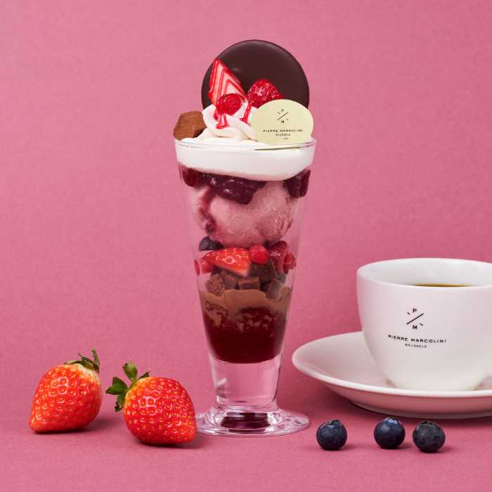 「パフェオフリュイルージュ&ショコラ(1,980円)」は、フリュイルージュアイスとビターチョコアイス、サブレショコラの食感が重なる贅沢な一品。