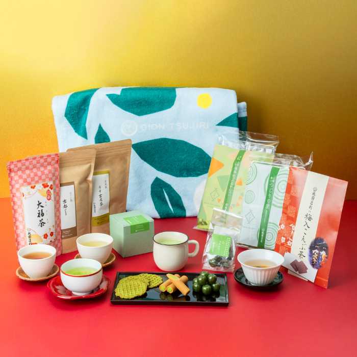 特典には、お茶の花や茶器モチーフがあしらわれた「オリジナルブランケット」を添えて、冬のティータイムを心地よく包み込みます。