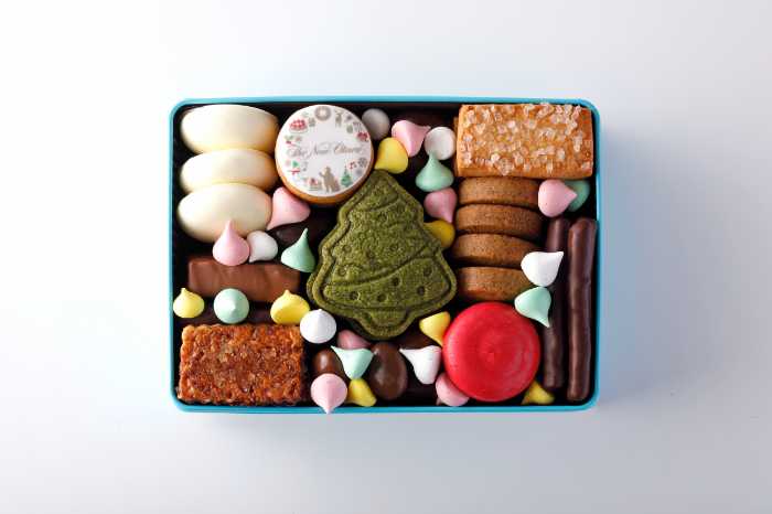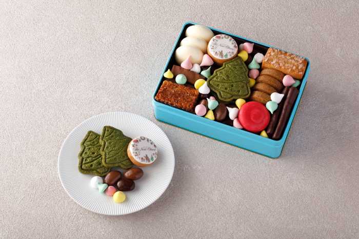 クッキー缶には、クリスマスツリー型の抹茶クッキー、サンタクロースや雪だるまのアイシングバニラクッキーをはじめ、パルメザンチーズクッキー、アールグレイクッキー、チョコパイ、サブレバニラなど多彩なフレーバーが詰め込まれています。
