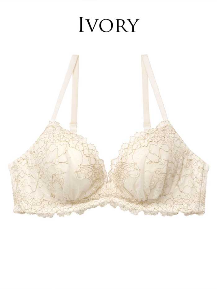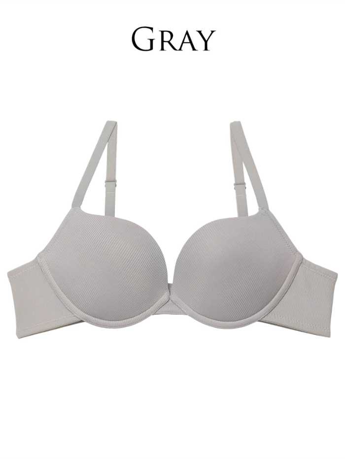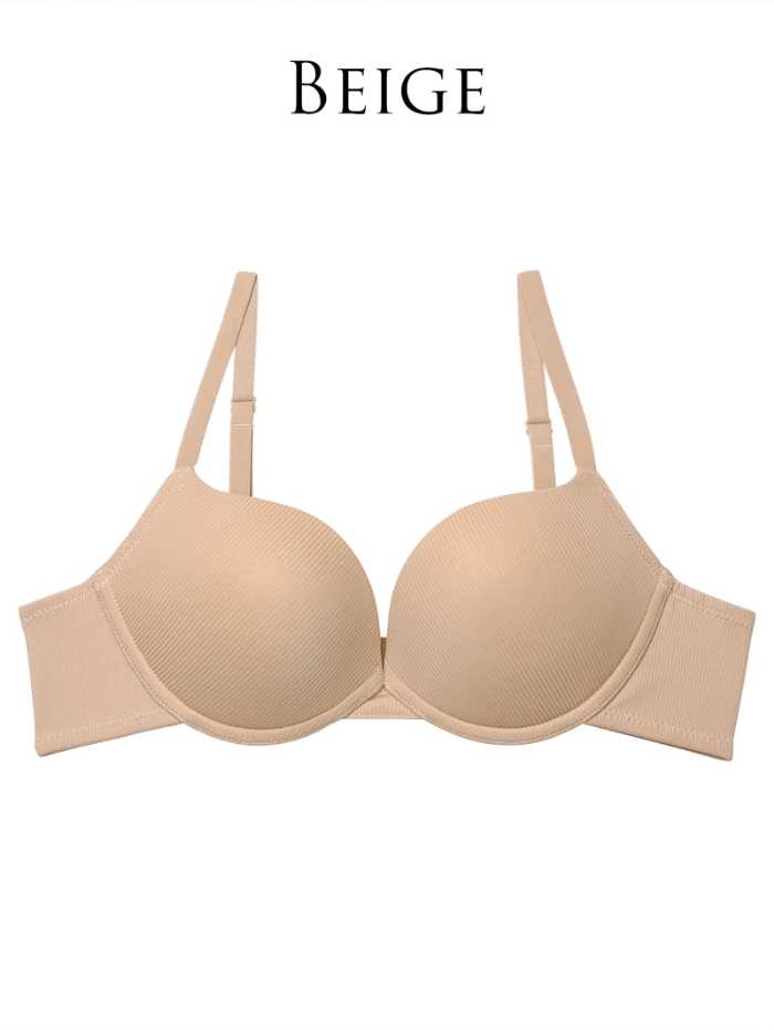 ノンワイヤーで楽ちん、前のめりな勝負ではなく、可愛さを自然に演出できるデザインです。