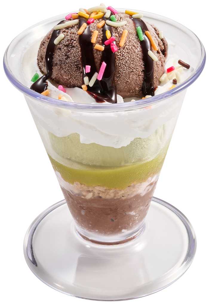 ベルギー製造のチョコムースに、サクサクのフィアンティーヌ、ピスタチオソース、ピスタチオアイス、ビターチョコチップアイス、ホイップを贅沢に重ねています。