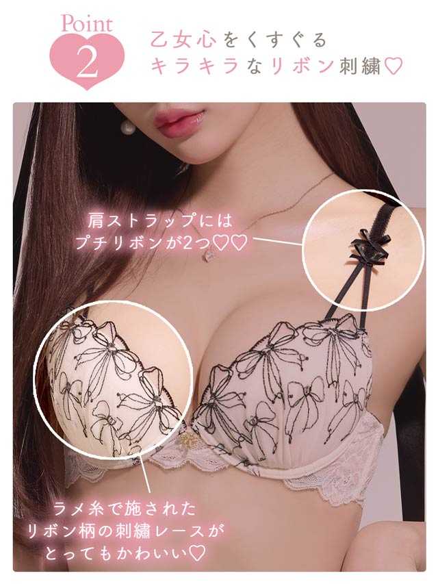 ミルキーホワイトは優しい生地に繊細なリボンと煌めきをちりばめた、ビタースウィートなデザイン♡ブラックのアクセントで大人っぽさもプラス。
