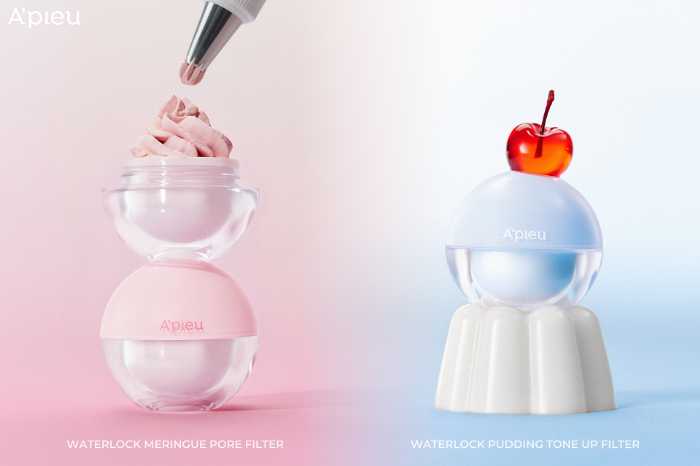 A’pieuの新作下地「ウォーターロック メレンゲ ポアフィルター」と「ウォーターロック プリン トーンアップフィルター」は、どちらもスキンケア成分が配合されており、肌のケアをしながら美肌効果を発揮します。