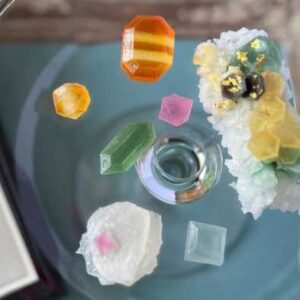 職人が一つひとつ丁寧に切り出す琥珀糖は、“切りたての輝き”を保ったまま届けられます。