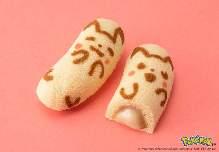 ふかふかスポンジにピカチュウ模様を焼き上げた「ピカチュウ東京ばな奈『見ぃつけたっ』バナナのみ風」は、ナナのみ(※)をイメージした“ナナのみ風とろ~りバナナカスタードクリーム”がとろける人気スイーツ。