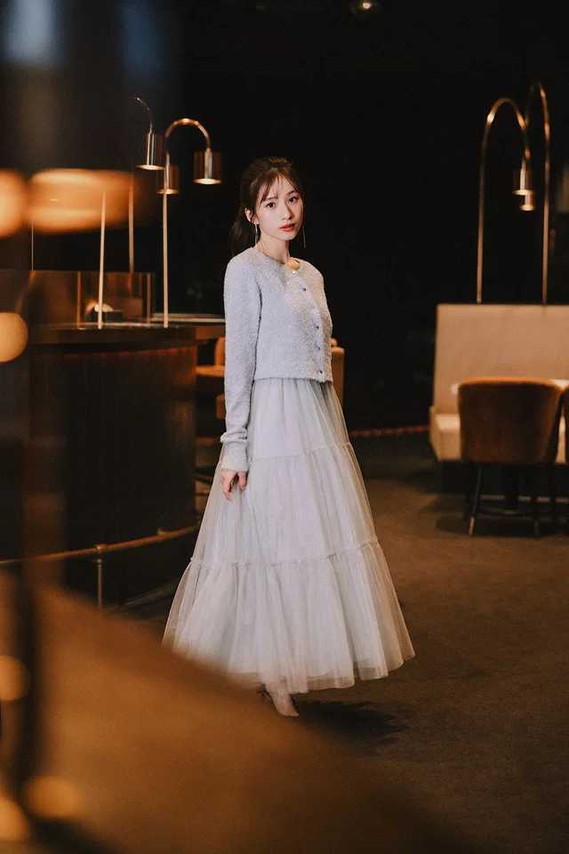 まず注目したいのは、CARDIGAN×ONE-PIECE SET(16,940円)。レディなツイードやふわりと広がるシルエットが、この季節らしい華やぎを演出します。
