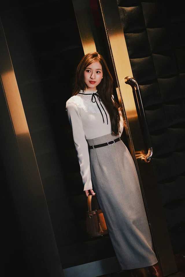 さらに、COAT(16,500円)×KNIT(10,890円)×SKIRT(8,690円)のコーデでは、柔らかな素材感が優しい印象に。
