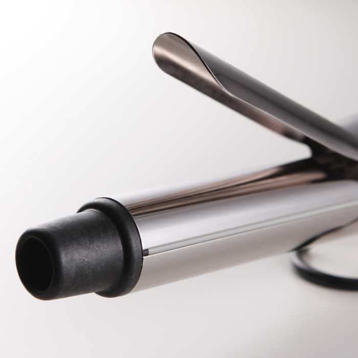 パイプ部にはクレイツイオン(R)チタニウム加工とシリコンラバーを搭載し、髪に優しくフィットしながら弾力のあるカールを演出。