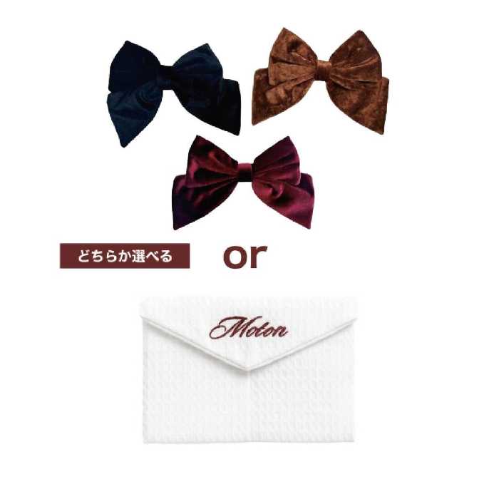 さらに、MOTON商品を2点以上購入で、刺繍フラットワッフルポーチやハンドメイドリボンバレッタなどの限定ノベルティもゲットできます。